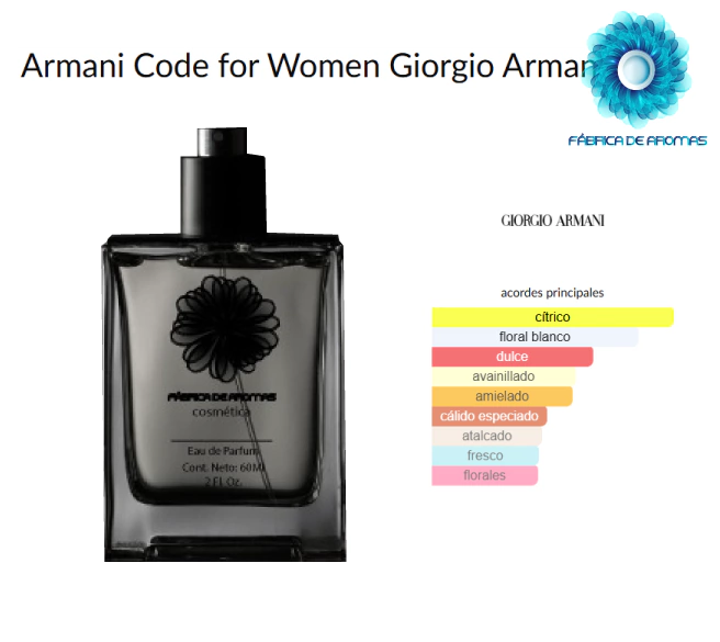 Code de Armani es una fragancia de 60 ml que captura la esencia de la elegancia y la sofisticación femenina. Este excepcional perfume, presentado en un envase de vidrio con atomizador sellado, es el complemento perfecto para la mujer moderna que busca dejar una huella memorable.